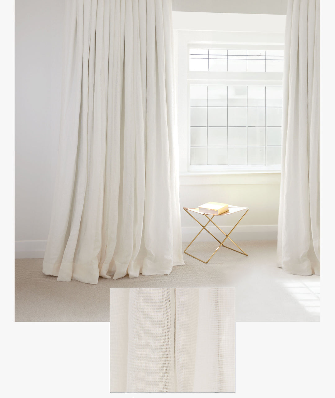 Linen is a natural product and does have an organic look so when you first hang the curtains they will be crinkled, you can leave them to relax or gently steam or iron.
